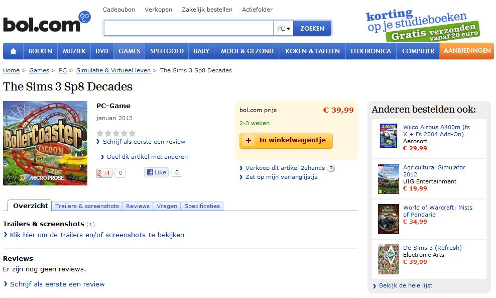 Yet another listing: http://www.mycom.nl/Product/Software-en-Boeken-Games/Electronic-Arts-THE-SIMS-3-SP8-DECADES/1364928