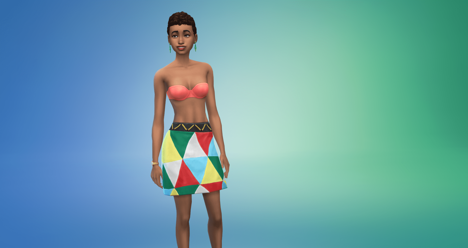 One thing to note is that the clothing, and the only accessory item (which is a pair of plumbob earrings) now looks quite outdated as The Sims 4 recently had a brand refresh featuring an updated plumbob look. Why was this not updated?