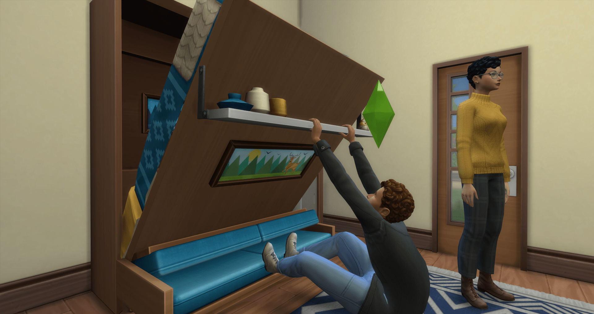 In addition to Tiny Living, one of the big things that this pack brings is the murphy bed, which returns to The Sims franchise, better than before.