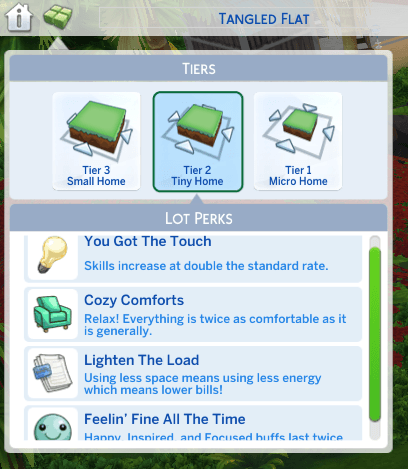 By building smaller and achieving these build sizes, you can get differnet lot perks! Skills may increase at double the speed, everything may be more comfortable, bills cost less, and more. I like that this brings an incentive to actually build small in this pack. Who needs big lots anyway?